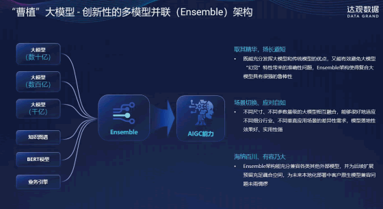 系統(tǒng)應(yīng)用BERT、GPT或其變體等先進(jìn)的NLP大模型,以及知識圖譜、業(yè)務(wù)規(guī)則,結(jié)合達(dá)觀數(shù)據(jù)“曹植”大模型做多模型并聯(lián)結(jié)合?蓳碛袕臄(shù)億到超過一百億的參數(shù)量,使其能夠有效地處理和分析大量該公司歷來文本數(shù)據(jù),用于客服問答、知識管理、制度管理、知識搜索等任務(wù)。